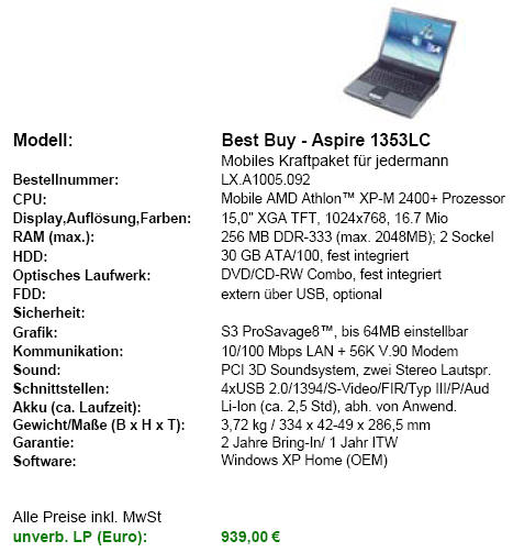 acer aspire 1353lc: athlon-mobile-xp-2400+, 256mb, 30gb, dvd cdrw, 15", MSxp